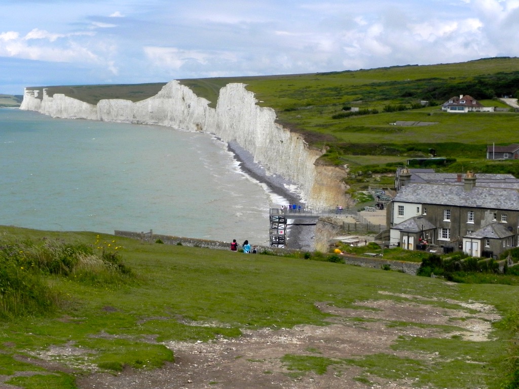E’ la nostra prima visita di questo viaggio. Il parco è composto da circa 280 ettari di bianche scogliere, di prati dove liberamente pascolano animali. Il sentiero che corre lungo la scogliera e che in parte percorriamo conduce a Beachy Head, un promontorio calcareo, con il suo famoso faro. Il posto è incantevole: il verde smeraldo dei prati, punteggiato dal colore del manto degli animali – mucche, cavalli, pecore – si unisce al bianco della scogliera e delle onde che s’infrangono e all’azzurro del mare, mentre gli uccelli attraversano il cielo. La giornata è bellissima e lo spettacolo della natura ne giova. Non c’è da scoraggiarsi però se c’è un po’ di nebbia o un tempo meno clemente: è sempre un grande spettacolo, romantico e … “molto inglese”.