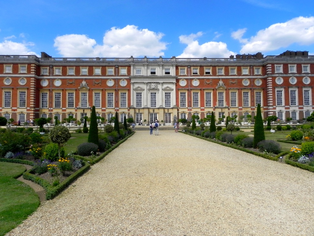 Visitiamo Hampton Court. E’ un palazzo reale che venne costruito agli inizi del 1500 e che ora, a seguito degli ampliamenti nel corso della sua storia, è un bell’esempio di architettura Tudor e barocca, con elementi vittoriani nei giardini esterni. La nostra visita si è sviluppata lungo l’itinerario di chiunque visita il castello. Ovvero è iniziata con gli appartamenti ufficiali di Enrico VIII, la Great Gatehouse di Wolsey, la Great Hall con il soffitto a travi dipinte e i rivestimenti con arazzi fiamminghi, la Great Watching Chamber, la magnifica Chapel Royal, la cappella reale con la volta blu, le cucine Tudor e le cantine. E’ continuata negli sfarzosi appartamenti barocchi di re Guglielmo III e della regina Maria: la Queen’s Presence Chamber, la sfarzosa Sala da Pranzo, la Sala delle Udienze, la Privy Chamber, la Sala della Ritirata, la grande Camera da Letto e lo Studiolo. Per concludersi nei giardini reali, con la Great Vine che ancora produce circa 320 kg di uva all’anno (si trova nei Riverside Gardens), nel grande parco che circonda il castello e che ospita anche il Real Tennis Court, il campo da tennis costruito intorno al 1620, destinato a un gioco comunque diverso dal tennis che conosciamo, e nel The Maze, il famoso labirinto risalente alla fine del seicento e lungo 800 metri (siamo stati nella media avendo impiegato circa venti minuti per ritrovare l’uscita).