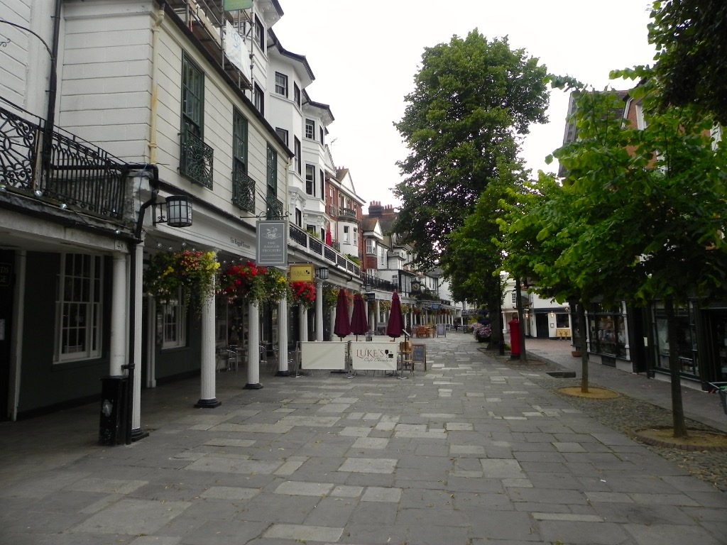 Royal Turnbridge Wells: ricca e molto inglese nella parte della passeggiata chiamata ora Pantiles, costruita sul finire del XVII° secolo quando la città viveva un momento di grande espansione. Si presenta come un bel colonnato georgiano che conduce alla fonte che dà il nome della città e che da sempre è un’attrattiva per i turisti (l’acqua è ricca di ferro e viene servita, durante il periodo estivo da persone in costume, i “dippers”). Sotto il colonnato si trovano numerosi ristoranti, bar, negozi, gallerie d’arte.