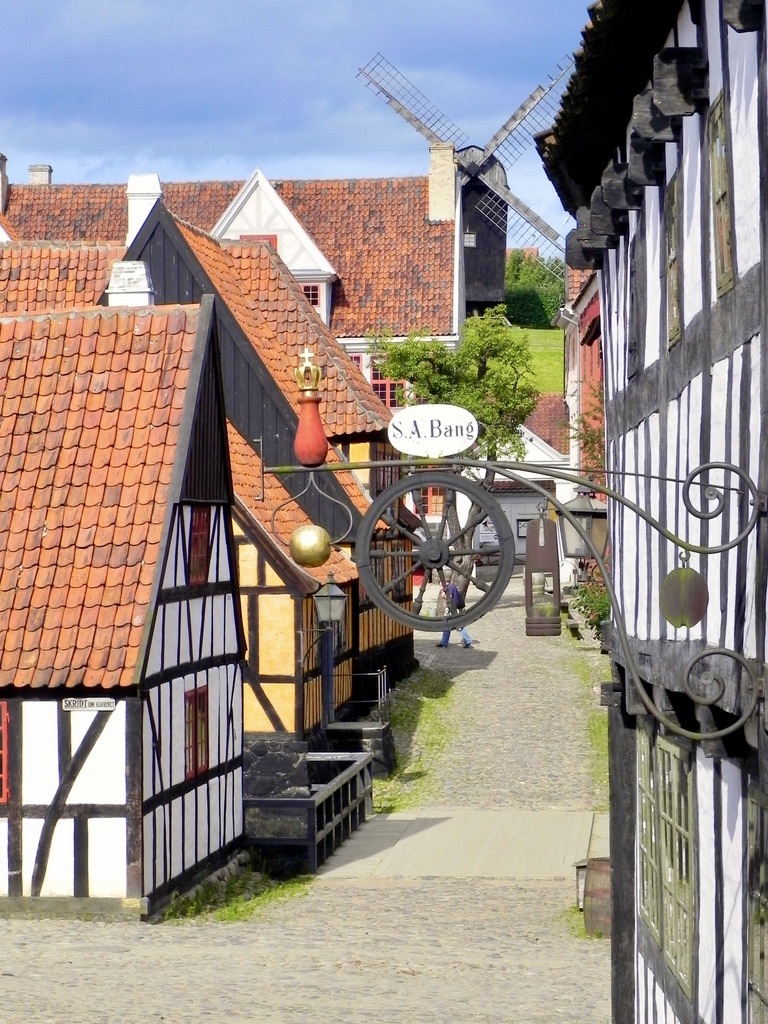 Raggiungiamo Faaborg e scopriamo un’incantevole cittadina sul mare, con case decorate con malvarose che risalgono al XVII° secolo (il suo periodo d’ora quando vantava una delle più grandi flotte commerciali della Danimarca) e tre pittoresche vie chiamate Holkegade, Adelgade e Tarngade. Oltre alla piazza centrale (Torvet) con una straordinaria fontana in bronzo, la vicina Torre Campanaria e tre piccoli ma interessanti musei: uno che in 22 stanze ricostruisce la vita di un commerciante del XVIII° secolo, uno che raccoglie opere di artisti danesi ed il terzo, insolito, ambientato nelle celle della ex prigioni, ora inglobate nel municipio, che presenta mostre dedicate a vagabondi, bari, disertori, arnesi artigiani per fare tatuaggi e documenti con interviste fatte a detenuti e guardie.
