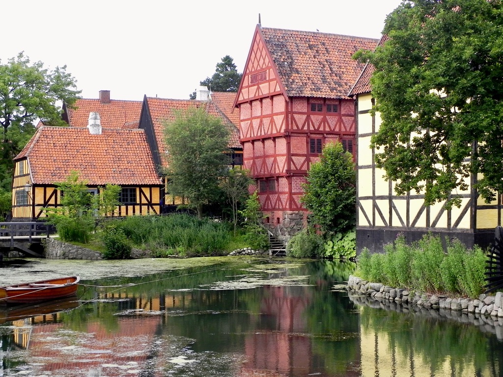 Il giorno dopo visitiamo Arhus. E’ la seconda città più grande della Danimarca, è piuttosto compatta e per questo facile da visitare. Nel centro storico spicca l’Arhus Domkirke: venne costruita a partire dal 1200 in stile romanico e poi rifatta nel XV° secolo in gotico come la vediamo ora. Al suo interno meritano attenzione: l’elaborato altare, il fonte battesimale, il pulpito, l’organo a canne barocco, la nave votiva, il sepolcro barocco e i restaurati affreschi. Un’altra chiesa interessante è la Vor Frue Kirke (Chiesa di nostra Signora), in Frue Kirkplads. Ma la città è famosa per due altre grandi risorse. La prima è l’ARoS Aarhus Kunstmuseum (Museo d’Arte), www.aros.dk, in Aros Alle 2, assolutamente non affascinante all’esterno, ma straordinario al suo interno. Costruito su nove piani, ispirato alla Divina Commedia di Dante, con l’ingresso al quarto dal quale si può scegliere se scendere all’Inferno o salire verso il Paradiso, raccoglie molte opere di arte contemporanea (Warhol, Lichtenstein), e tra queste colpiscono, in maniera particolare, quella composta dalle parti anatomiche vere di un cavallo, poste in vasi di vetro illuminati da luci colorate, dell’artista danese Bjorn Norgaard, un grido di protesta e di orrore contro la guerra in Vietnam, e “Boy”, ossia un fanciullo accovacciato, scultura straordinariamente verosimile, alta 5 metri, di Roy Mueck. La seconda è Den Gamle By (La Città Vecchia), in Viborgvej 2, che è un museo all’aperto che raccoglie una settantina di case parzialmente costruite in legno, trasportate da ogni parte della Danimarca e disposte in modo tale da simulare una cittadina di provincia, in cui attori recitano la parte di artigiani. L’insieme appare autentico e didascalico nel mostrare la vita di una cittadina del tempo che fu e mette bene in evidenza l’interesse dei danesi per i costumi e le ricostruzioni d’epoca (per chi scrive fa un po’ un certo effetto vedere la perfetta riproduzione di una camera di un’adolescente degli anni ’60/’70 …).