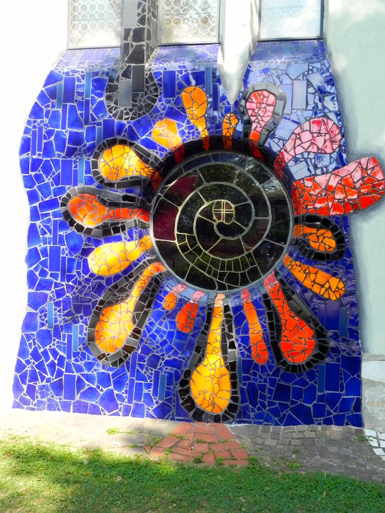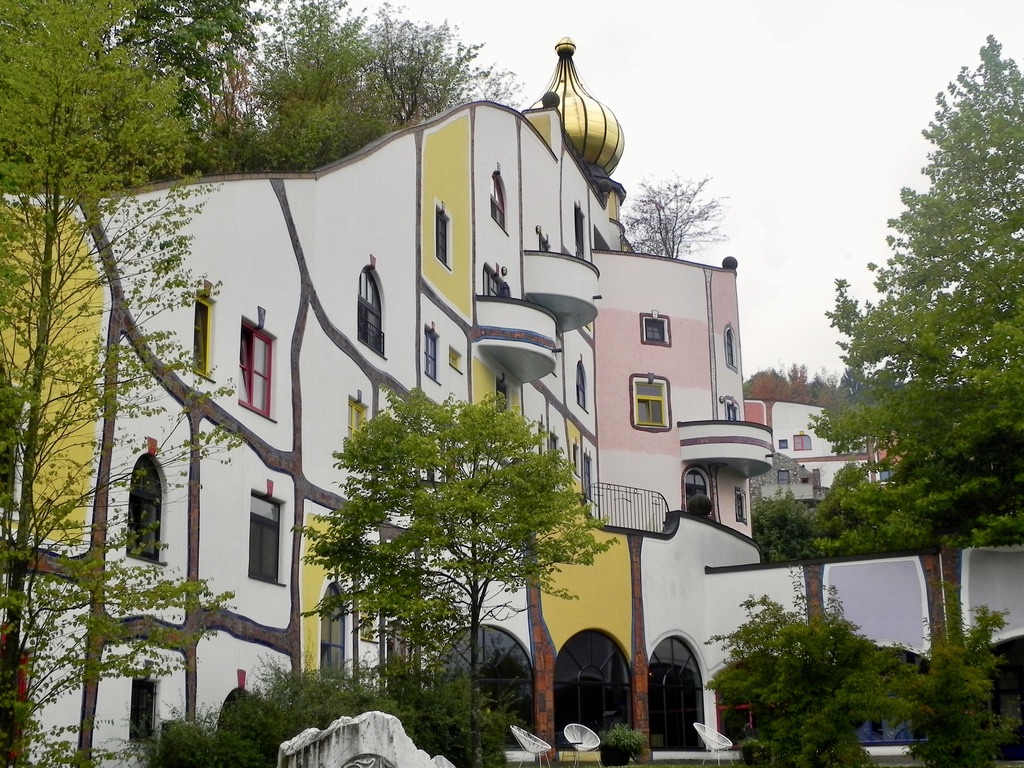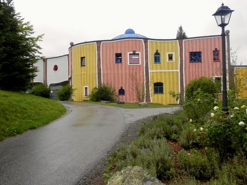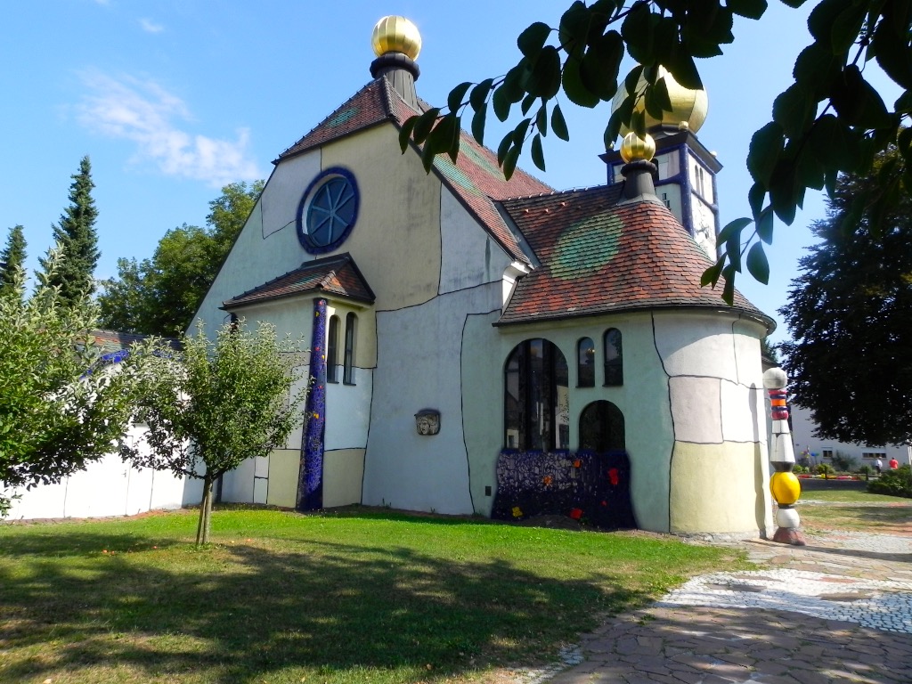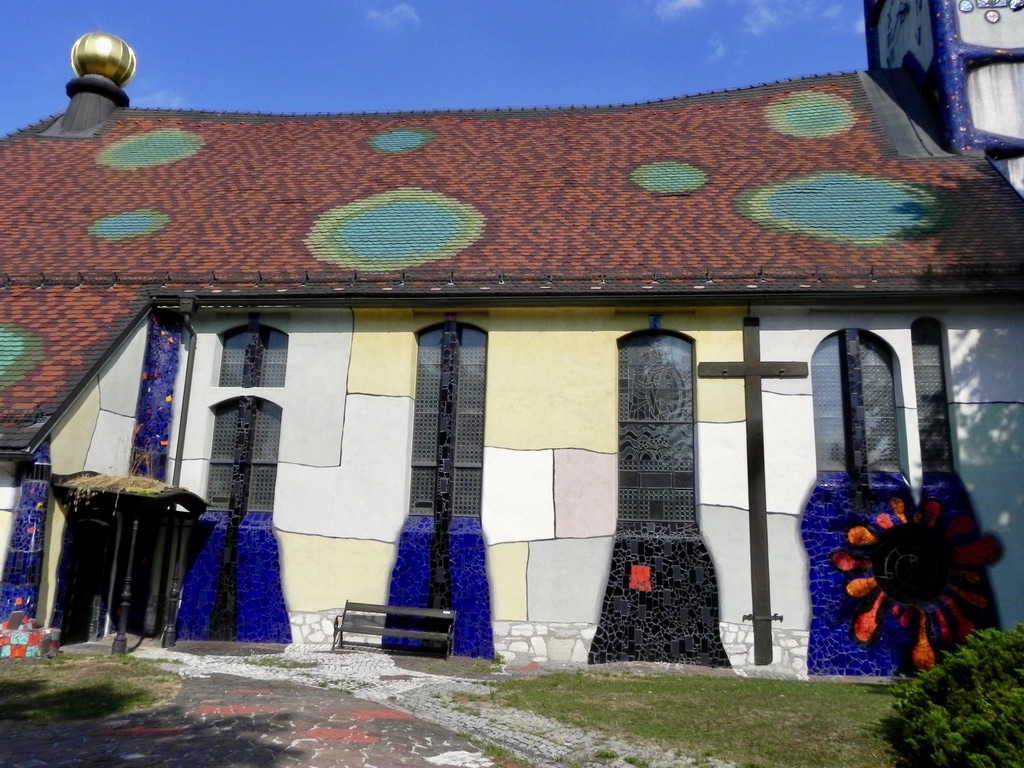 Entriamo nella Stiria e facciamo sosta a Barnbach. Da circa tre secoli luogo di fabbricazione del vetro, questa cittadina è ora famosa per la sua chiesa dedicata a Santa Barbara. Edificata dopo la seconda guerra mondiale, l’anonima e mal costruita chiesa necessitava di essere ristrutturata già alla fine degli anni ’80 del secolo scorso. Fu così che venne organizzato un referendum tra gli abitanti della cittadina: l’80% dei partecipanti fu d’accordo nell’assegnare i lavori all’architetto Friedensreich Hundertwasser (1928-2000), noto per la sua genialità e per i suoi progetti originali, caratterizzati da brillanti colori, forme organiche, riconciliazione dell’uomo con la natura, dal rifiuto delle linee dirette, dall’amore e dall’uso della spirale (nella sua produzione si possono facilmente ritrovare echi di Gaudì, dell’arte della Secessione viennese, di Egon Schile e Gustav Klimt). E la sua Sankt Barbara Kirche, che può essere visitata gratuitamente (c’è un foglio esplicativo in inglese all’ingresso per il quale è opportuno lasciare un’offerta, mentre le visite guidate sono solo su appuntamento), non è che l’esaltante realizzazione delle sue idee sull’arte ed una grande delizia per gli occhi.