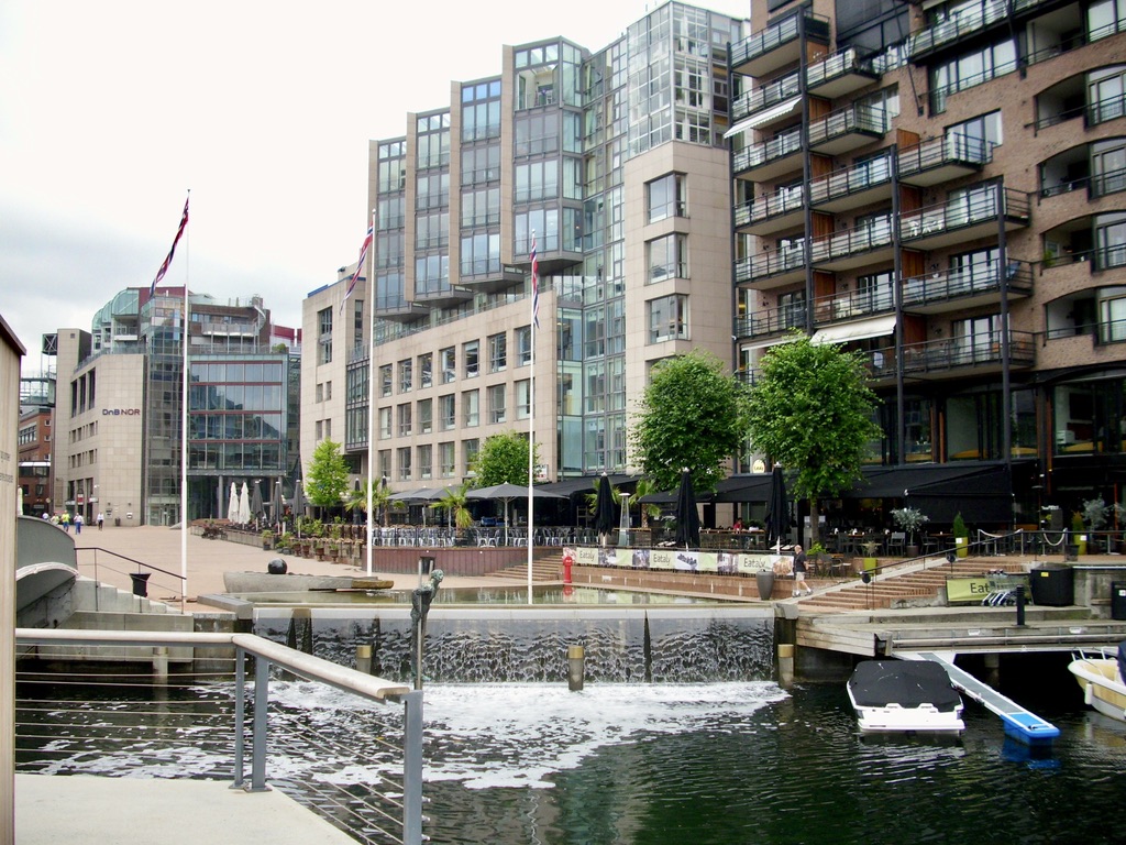 Lasciamo la penisola e ci spostiamo in Aker Brygge, il vecchio cantiere navale ora un complesso commerciale all’avanguardia, nuovi edifici residenziali in vetro ed acciaio ed una grande area di ristorazione. Qui come fanno gli abitanti di Oslo ed i numerosi turisti gustiamo degli ottimi gamberetti, accompagnati da una baguette fresca, maionese ed una spruzzata di succo di limone.