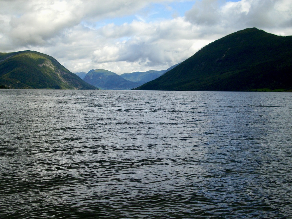 La mattina dopo, con il traghetto, sul quale abbiamo caricato il nostro camper, percorriamo il fiordo per tutta la sua lunghezza di circa 20 chilometri. Lo spettacolo è di quelli che rimangono nella mente: sulle parete scoscese sono abbarbicate alcune fattorie (che fanno sorgere domande: come avranno fatto a costruirle? saranno abitate?), impetuose cascate gettano le loro acque in quelle verde smeraldo del fiordo, gabbiani si lasciano trasportare dalle folate di vento e sembrano prepararsi per le nostre foto ricordo. Fa anche molto freddo però e la voglia di rinchiudersi all’interno del traghetto è molto forte. La crociera finisce a Hellesynt.