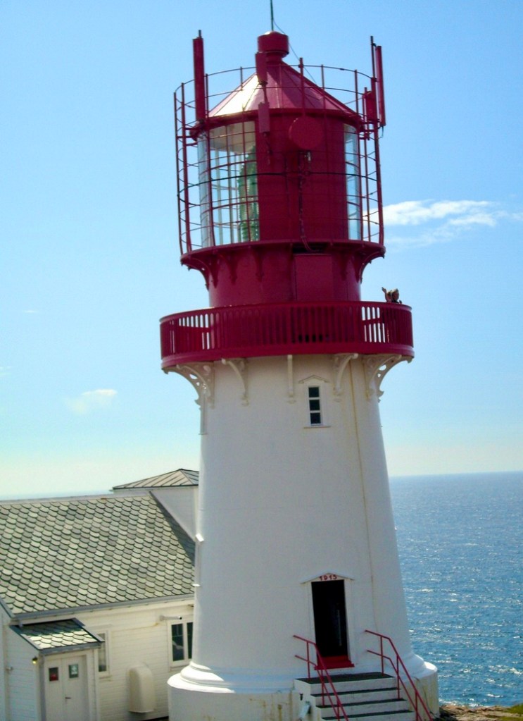 Lasciamo Flekkefjord per Farsund, bella cittadina con bianche case in legno. Ci spostiamo al faro che domina il promontorio roccioso di Lindesnes. Lindesnes è il punto più meridionale della Norvegia, ed è qui che le acque dello Skagerrat, il canale naturale tra la Danimarca e la Norvegia, si scontrano con quelle del mar del Nord, e che, per gli opuscoli turistici della zona, si possono avere scorci fotografici migliori di quelli di Capo Nord. Il faro è come devono essere tutti i fari: piccolo, bianco e rosso, rotondo, a picco sul mare, con le rocce tutte attorno. Pittoresco.