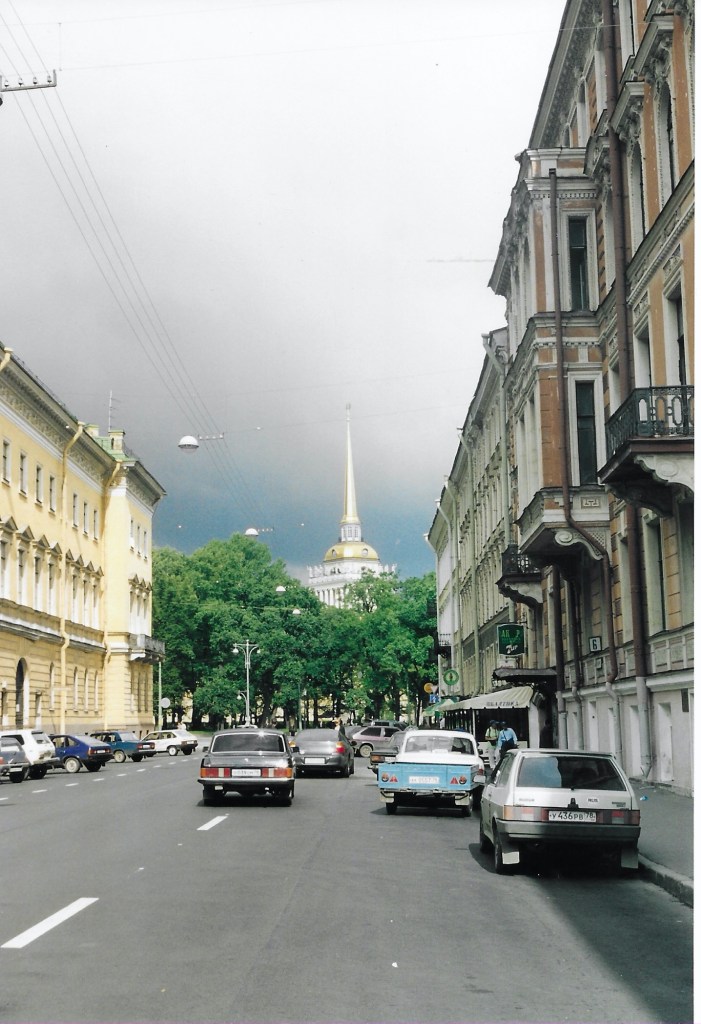 In città tutto è grande e gli edifici sono imponenti; molti, costruiti nel settecento e nell’ottocento, sono fatiscenti eppure abitati. La ricorrenza della fondazione (il 27 maggio e sono 300 gli anni) ha indubbiamente migliorato la facciata della città. Solo che per la stragrande maggioranza degli edifici la ristrutturazione è ormai impensabile perché richiederebbe ingenti capitali. Alle finestre, comunque, si vedono telecamere e molte antenne paraboliche e nei cortili, abitati da topi ed occupati da immondizia varia, Mercedes, BMW, Audi, anche nuove di pacca (i casermoni sovietici e le nuove case, ben fatte e, almeno alla vista, ospitali, si trovano nelle zone residenziali periferiche che abbiamo attraversato quanto siamo arrivati e che, in direzione opposta, attraverseremo quando andremo in Finlandia).