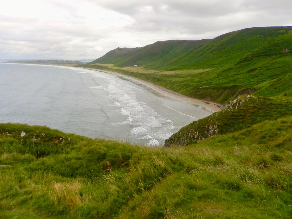 Siamo nella Gower Peninsula (Y Gwyr) nella contea di Swansea, che si estende per circa 25 chilometri, classificata come “Area di straordinaria bellezza naturale, in larga parte posseduta dal National Trust. La nostra prima tappa è il villaggio di Rhossili: incantevole è la passeggiata che facciamo lungo la baia con la splendida spiaggia a ridosso della ripida altura, Rhossili Down, fino a Worms Head, dal profilo che può ricordare un dragone (attenzione al significato di “worm”: “dragone”), che è l’estremità meridionale della baia stessa. Facendo attenzione all’orario delle maree, raggiungiamo l’estremo crinale (Outer Head): e qui allo splendore del mare, della spiaggia, della vegetazione del ripido crinale si aggiunge quello dei numerosi animali che qui vivono (gabbiano, procellarie, pulcinella di mare, gazze marine, urie, e, ci dicono, foche).
