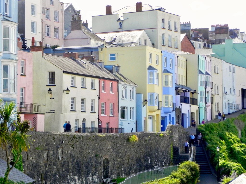 La prima tappa è Pembroke (Penfro), o per meglio dire, il suo imponente e spettacolare castello (Castell Penfro), risalente al Medioevo, con alcuni camminamenti sulle mure e di collegamento fra le torri, con un mastio il cui torrione può essere raggiunto con una scalinata di circa cento gradini e la cui salita è ripagata da una bella vista sull’intero villaggio. Che è soprattutto una strada lunga la quale si trovano delle interessanti case in stile vittoriano e georgiano.
