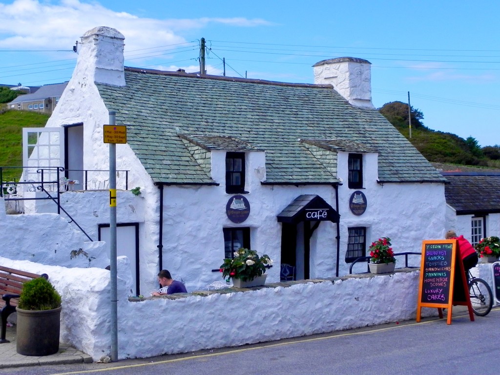 Percorriamo tutta la penisola di Llyn, una lunga (circa 56 chilometri) e stretta (circa 13 chilometri) lingua di terra, che con l’isola di Anglesey fu l’ultimo baluardo della resistenza delle popolazioni locali agli invasori Romani e poi Normanni (di qui il forte senso d’identità nazionale gallese che scorre nelle vene delle persone che qui abitano). Noi arriviamo fino alla punta estrema di Aberdaron, per la nostra guida “Lonely planet” “un posto fuori dal mondo con bianche casette spazzate dal vento” (e per questo motivo noi ci siamo andati), facendo sosta a Morfa Nephyn, un minuscolo villaggio che si sviluppa attorno ad un parcheggio gestito dal National Trust e da cui parte la bella passeggiata sulla spiaggia (il secondo motivo per la nostra visita).