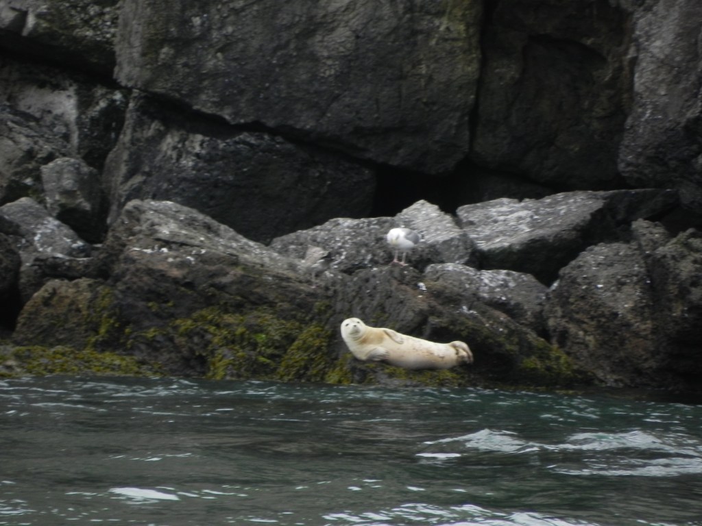 Gli edifici della comunità dei monaci ci trasmettono un’impressione di austerità, ordine ma anche opulenza (producono profumi ottenuti dai fiori selvatici dell’isola e prodotti dolciari). Visitiamo l’antica prioria, sede di monaci benedettini nel Medioevo, e la St Illtyad’s Church, con uno strano campanile a punta e con, al suo interno, una pietra con una iscrizione in caratteri ogham (antica scrittura celtica). E’ stato poi piacevole passeggiare: bella la vista che si ha dal faro. E compagni sono stati i numerosi uccelli che vivono sull’isola e qualche foca grigia mollemente adagiata sulla riva.