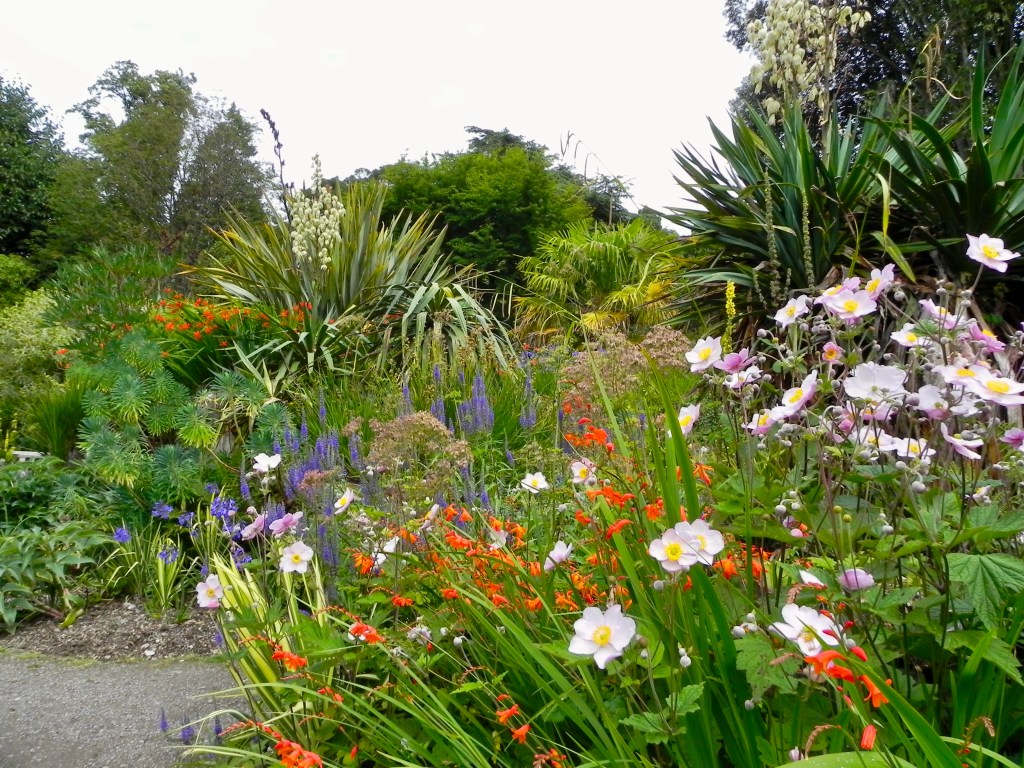 Visitiamo il National Botanic Garden (Gardd Fotaneg Genedlaethol Cymru), a Llanarthney nella valle del fiume Tywi, nella contea Carmarthenshire. Dai depliant di presentazione: “The National Botanic Garden of Wales (…) includes 568-acres of parkland, formal gardens, lakes and woodland which all surround a huge tropical glasshouse designed by Norman Foster. This is Wales’ answer to the Eden Project – minus the crowds”. La gigantesca serra, a forma di cupola ed altamente tecnologica, colpisce per la sua struttura ma, soprattutto, per le piante che in essa trovano rifugio in quanto sono in via di estinzione. Comunque è tutto il giardino che lascia una profonda traccia in chi lo visita, per la sua ricchezza e varietà.
