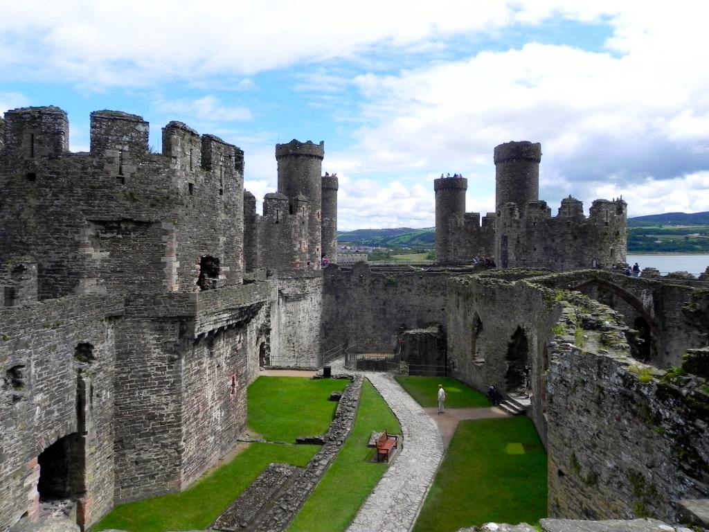 Il castello, costruito nella seconda del XIII° secolo, è inserito nell’elenco dei siti Unesco, è un ottimo esempio di architettura militare medievale, imponente, con bastioni, torri e passaggi, che gli conferiscono anche una dimensione fiabesca e regalano splendide vedute della cittadina e del territorio circostante (l’estuario del fiume Conwy e del vicino Snodownia National Park). Degli interni rimane poco: della Cappella, degli appartamenti reali e della Great Hall rimangono le rovine che comunque contribuiscono al fascino della visita.