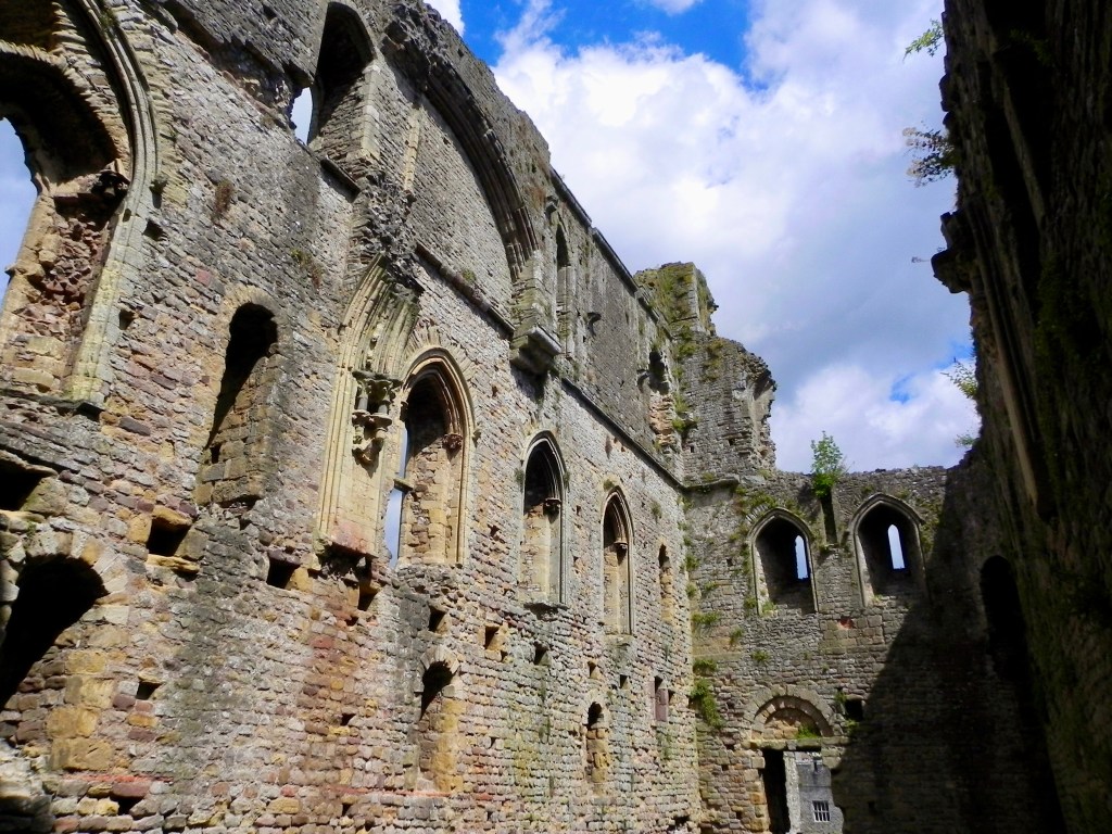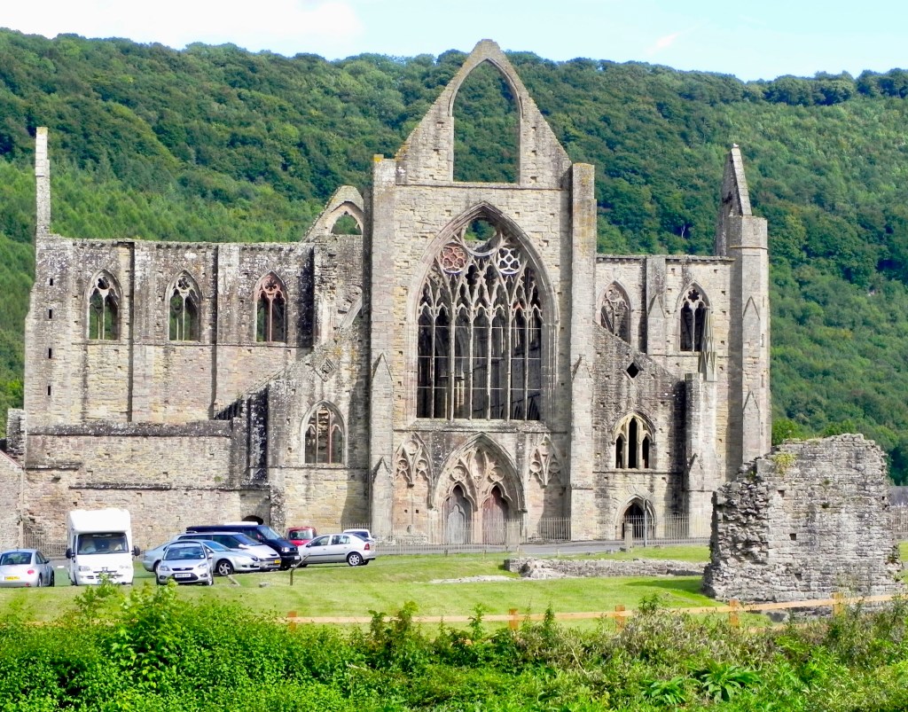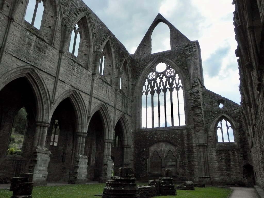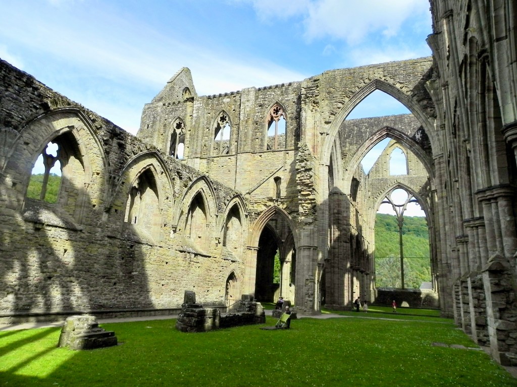 Percorriamo la strada lungo la valle del fiume Wye tra Chepstow e Monmouth che ci porta al villaggio di Tintern per la visita delle meravigliose e ben conservate rovine della omonima abbazia cistercense, Abaty Tyndym. Nella nostra visita siamo rimasti affascinati dalla abbazia (costruita a partire dal 1269), intatta se si esclude il tetto, un capolavoro del gotico britannico con le meravigliose monofore della parte occidentale, gli slanciati archi gotici e gli elaborati trafori della navata, i resti del chiostro, la sala del capitolo, il refettorio. Il fascino è accresciuto dalle presenza dei licheni e dalle screziature di color grigio, verde, rosa ed oro presenti sulle antiche pietre. Nonché dal contesto naturale lungo il fiume Wye in cui l’abbazia si trova e che può essere maggiormente apprezzato con una breve passeggiata, come noi abbiamo fatto, di circa 4 chilometri, fino ad un dirupo roccioso chiamato Devil’s pulpit.