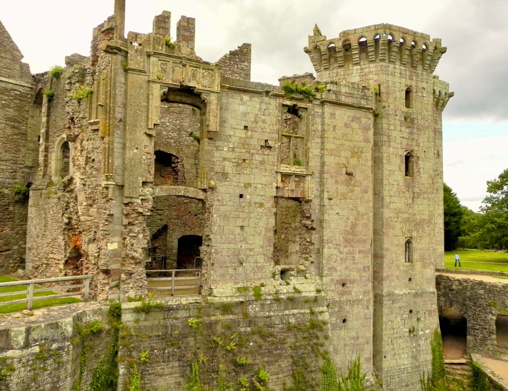 L’ultima tappa è il Raglan Castle, bello nella sua pietra rosa scuro, l’ultimo grande castello medievale ad essere costruito, più residenziale e manifestazione di ricchezza e potenza che fortezza. A testimonianza di ciò, sono gli ampi cortili e l’ imponente l’esagonale Great Tower attorno a cui si sviluppa un fossato.