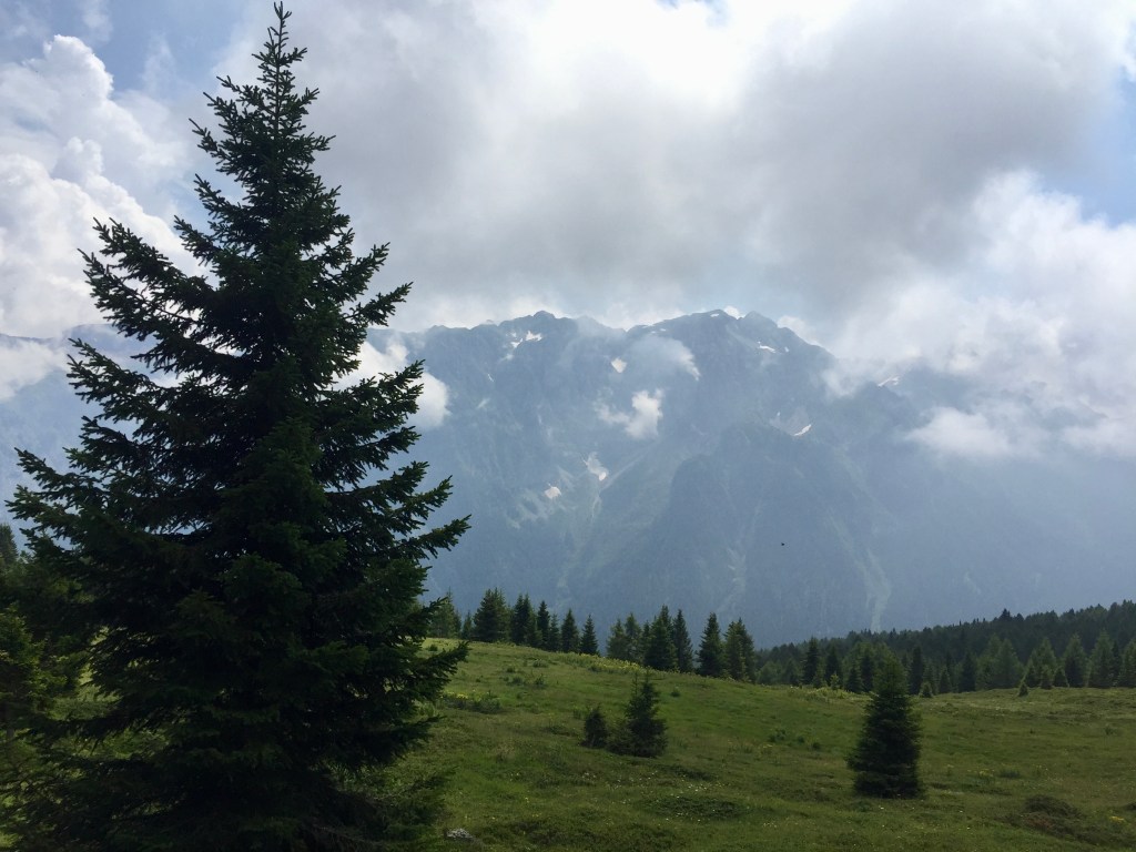 Con il treno raggiungiamo Daolosa per prendere la cabinovia che ci porta in Val Mastellina a 1376 metri sul livello del mare. Dalla stazione di arrivo seguiamo il facile sentiero che ci conduce al rifugio “Orso Bruno”: siamo in cima alle piste da sci di Folgarida/Marilleva/M.di Campiglio, a 2180 metri sul livello del mare. Decidiamo di pranzare all’esterno: mentre mangiamo un buon piatto di polenta con funghi, continuiamo ad ammirare il bel panorama che ci accompagna da quando siamo scesi dalla cabinovia: a nord le vette del Cevedale e a sud il Gruppo di Brenta.