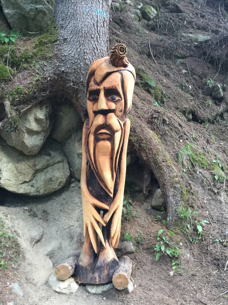 Il pomeriggio sta finendo e anche se le trote hanno da poco iniziato a bollare (situazione ideale per la pesca) lasciamo il lago seguendo il facile “Sentiero degli Gnomi” (il nome deriva dalle opere in legno che ritraggono streghe, spiriti del bosco, animali e gnomi che si incontrano lungo il percorso) che ci porta a Pellizzano. Da qui, sempre a piedi, lungo la pista ciclabile, raggiungiamo il campeggio.