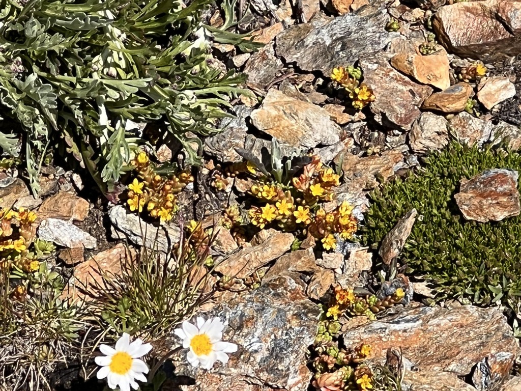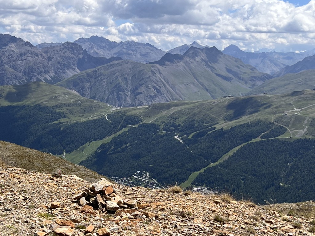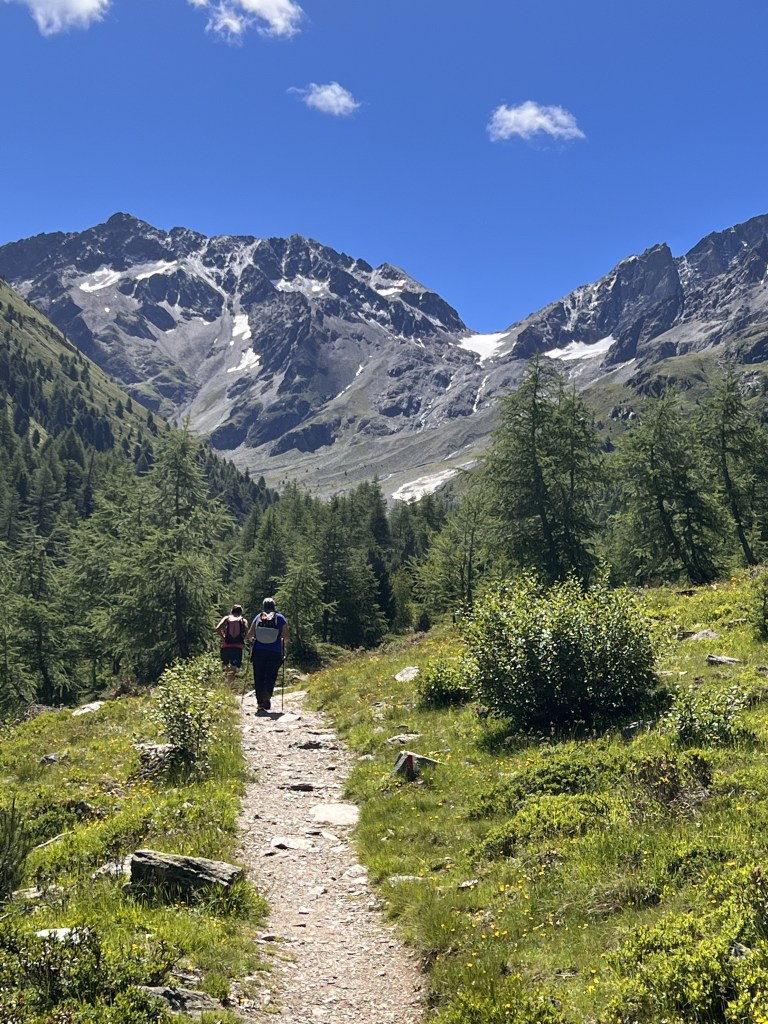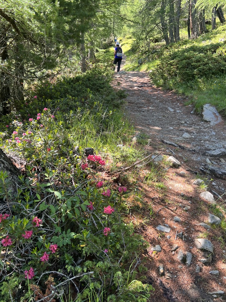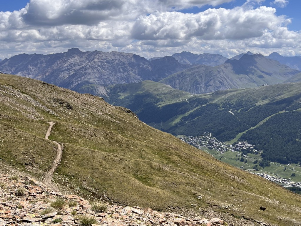 E’ una bella giornata di sole quando raggiungiamo Carosello 3000. Seguiamo il cartello che indica il sentiero 162: siamo in vetta e lo spettacolo delle cime delle montagne attorno è davvero maestoso. All’inizio il sentiero è sassoso, qualche bel fiore spunta tra le rocce, Livigno con il suo lago (quest’anno molto in secca) sono sotto di noi, poi, dopo il rifugio Costaccia (2362 metri di altezza) ritorna prepotentemente la vegetazione, troviamo le prime case e Livigno è raggiunta.