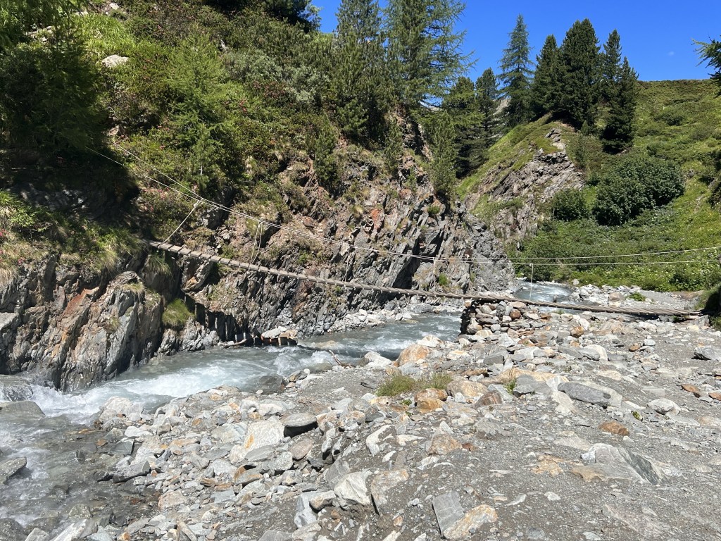 La prima passeggiata è iniziata in bicicletta lungo la pista ciclo-pedonale che segue la strada che sale al passo della Forcola fino il parcheggio P8. Attraversata la strada, abbiamo seguito la parallela fino al primo bivio, girato a sinistra, superato il torrente Spool e raggiunto la malga Alpe Vago. Questa malga è uno dei posti che amiamo di Livigno: si trova all’imbocco dalla Val Nera, producono quello che qui si può mangiare su grandi tavoli all’esterno, ovvero degli ottimi salumi, formaggi e dolci (per saperne di più si può visitare la loro pagina Facebook). Tra i loro piatti troviamo squisita la slinzega, certamente “sorella minore” della bresaola per le sue dimensioni, ma non per suo gusto, molto più pronunciato, ed indimenticabile la ricotta ricoperta da uno sciroppo a base di pino mugo.