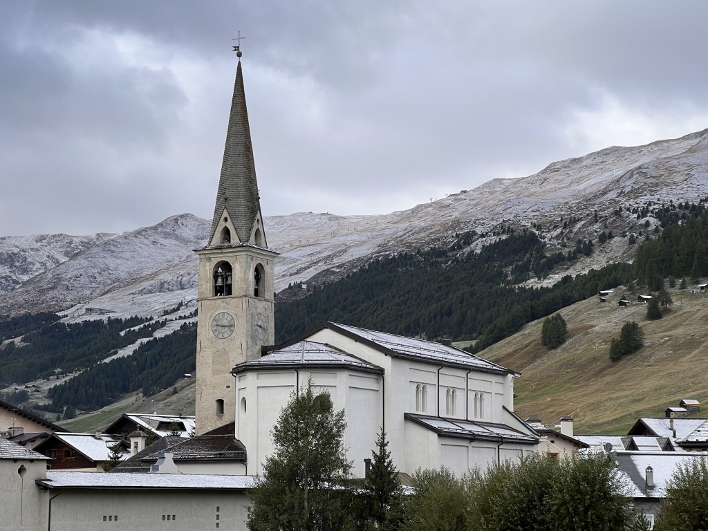 Nei due lunghi fine settimana di settembre, la pesca ha invece avuto il sopravvento, e l’impavido pescatore non si è fermato anche quando la temperatura si è repentinamente abbassata e un po’ di neve ha imbiancato il paesaggio. Però, come sempre, a piedi ed in bicicletta, abbiamo percorso gran parte della pista ciclopedonale che costeggia lo Spool (è lunga complessivamente 17 chilometri perché attraversa tutta la valle), che è a corsie separate, una per i pedoni ed una per le biciclette e … gli sciatori di fondo in allenamento. Mentre la via centrale di Livigno è stata il luogo dove ci siamo fermati per qualche buon caffè, degli ottimi hamburger e squisite patatine da “Mauri’s Hamburgheria“, in via Ostaria 406, e qualche regalo.